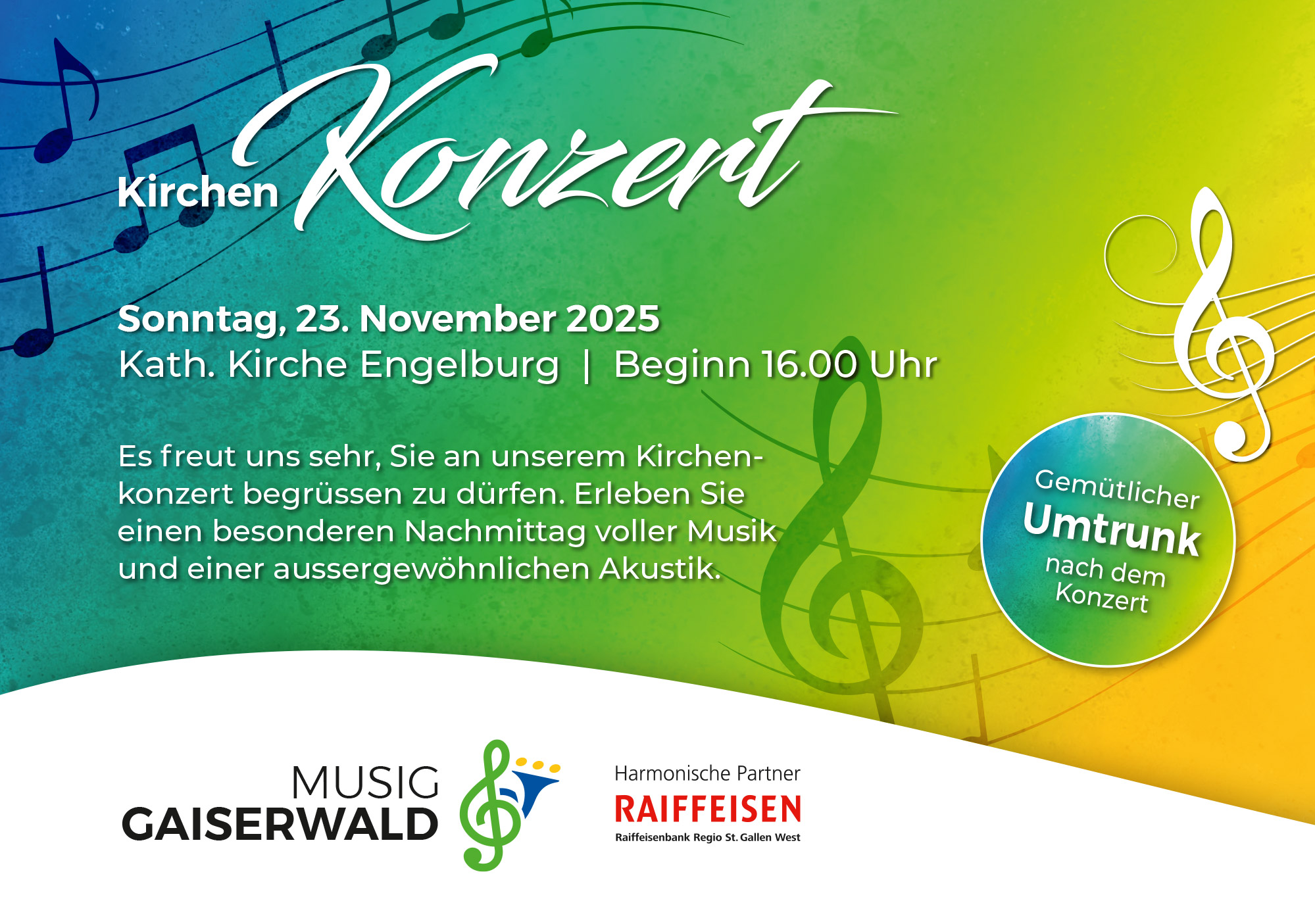 Sonntag, 23. November 2025 Kath. Kirche Engelburg | Beginn 16.00 Uhr Gemütlicher Umtrunk nach dem Konzert
